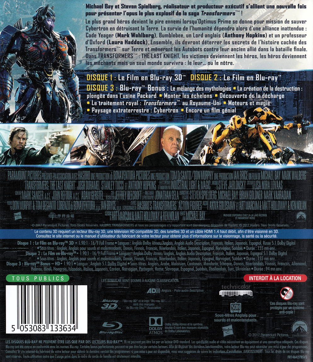 - Titre Transformers 5 - The last knight [Blu-ray 3D]