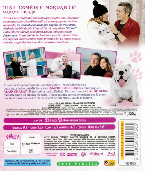 Jean-Pierre et Nathalie s'aiment depuis quatre ans. Pour fêter cet anniversaire, Jean-Pierre offre à sa compagne un cadeau inattendu, un adorable bouledogue anglais de trois mois. Nathalie est folle de joie. C'est décidé : il s'appellera "Trésor". Entre elle et l'animal, la relation devient immédiatement fusionnelle. Trésor fait de la chambre à coucher son territoire et y règne en maître, ronfle, bave, investit le lit. Le couple tangue, chavire, au gré des humeurs de ce monstre autoritaire...