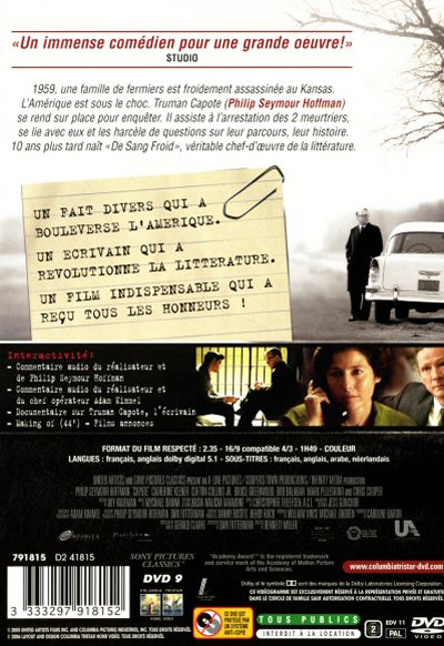 En novembre 1959, Truman Capote, auteur de Breakfast at Tiffany's et personnalité très en vue, apprend dans le New York Times le meurtre de quatre membres d'une famille de fermiers du Kansas. Ce genre de fait divers n'est pas rare, mais celui-ci l'intrigue. En précurseur, il pense qu'une histoire vraie peut être aussi passionnante qu'une fiction si elle est bien racontée. Il voit là l'occasion de vérifier sa théorie et persuade le magazine The New Yorker de l'envoyer au Kansas. Il part avec une amie d'enfance, Harper Lee.