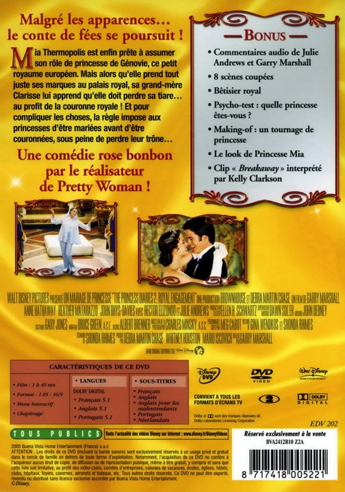 - Titre originale The princess diaries 2 - Royal Engagement