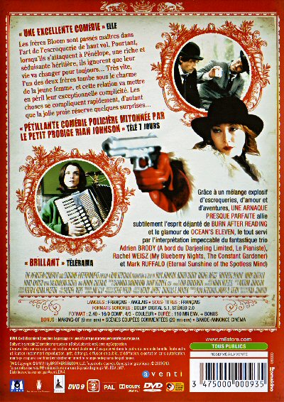 Les frères Bloom sont passés maîtres dans l’art de l’escroquerie de haut vol. Pourtant, lorsqu’ils s’attaquent à Pénélope, une riche et séduisante héritière, ils ignorent que leur vie va changer pour toujours. Très vite, l’un des deux frères tombe sous le charme de la jeune femme, et cette relation va mettre en péril leur exceptionnelle complicité. Les choses se compliquent rapidement, d’autant que la jolie proie réserve quelques surprises...