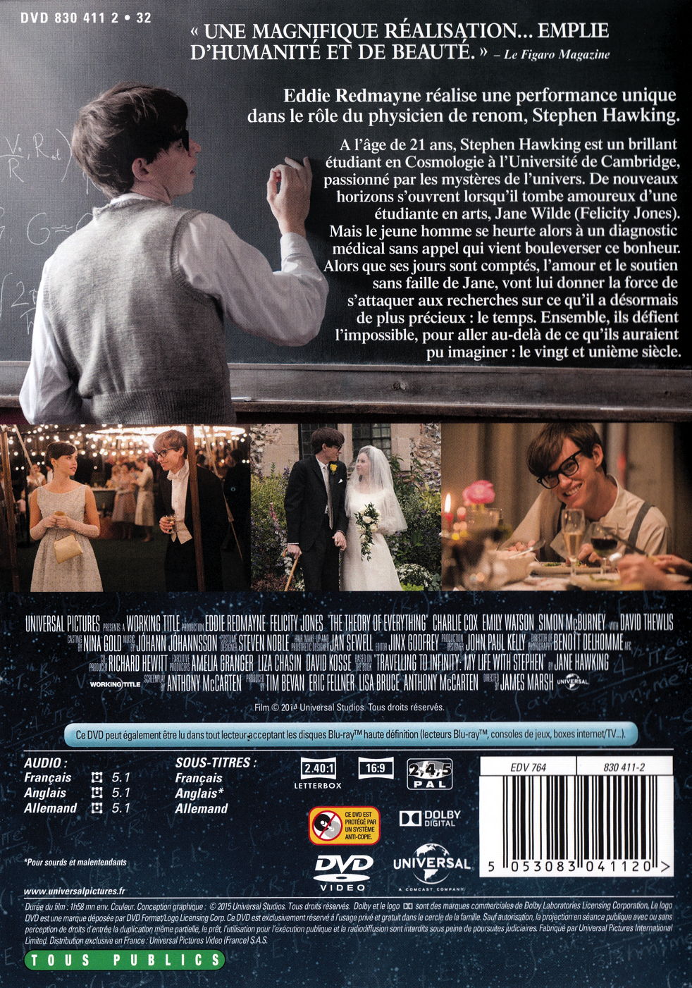 1963, en Angleterre, Stephen, brillant étudiant en Cosmologie, entend bien donner une réponse simple et efficace au mystère de la création de l'univers. Mais le jeune homme, se heurte à un diagnostic implacable : une dystrophie neuromusculaire plus connue sous le nom de maladie de Charcot...