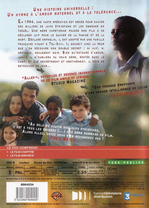 En 1984, des milliers d'Africains de 26 pays frappés par la famine se retrouvent dans des camps au Soudan. A l'initiative d'Israël et des Etats-Unis, une vaste action est menée pour emmener des milliers de Juifs éthiopiens vers Israël. Une mère chrétienne pousse son fils de neuf ans à se déclarer juif pour le sauver de la famine et de la mort. L'enfant arrive en Terre Sainte. Déclaré orphelin, il est adopté par une famille française sépharade vivant à Tel-Aviv. Il grandit avec la peur que l'on découvre son double-secret et mensonge : ni juif, ni orphelin, seulement noir. Il découvrira l'amour, la culture occidentale, la judaïté mais également le racisme et la guerre dans les territoires occupés...