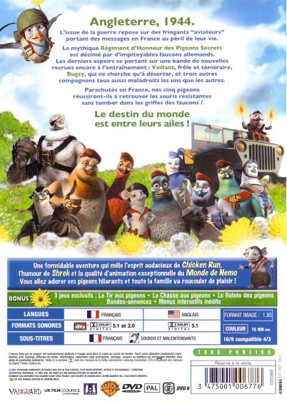 Vaillant, frêle et maladroit, Bugsy, qui ne cherche qu'à déserter, ou leurs idiots de compères, ne sont absolument pas prêts pour le combat ! Parachutés en France, ces cinq pigeons balourds réussiront-ils à retrouver les souris résistantes sans tomber dans les griffes des faucons ? Le destin de l'Angleterre est entre leurs ailes !