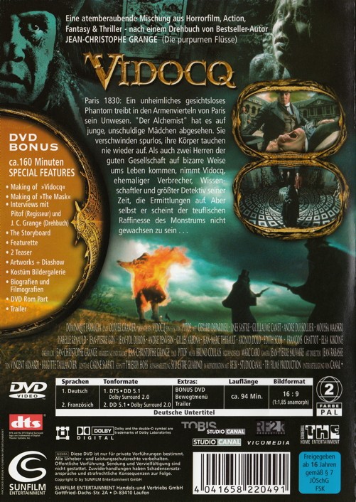 Paris, 1830. Sur les traces d'un tueur sans visage, Vidocq, ex-bagnard devenu enquêteur, disparaît. Accompagné de Nimier, l'associé de Vidocq et de Preah, la maîtresse du disparu, Etienne Boisset, jeune et naïf biographe venu de Province, tente de démêler l'enquête que Vidocq avait commencée. De bordels en fumeries d'opium, de sombres ruelles cabinets secrets, Etienne découvre un monde d'une fantastique décadence...