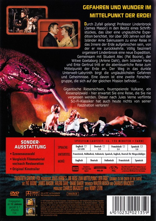 A Edimbourg, à la fin du siècle dernier, le professeur Lindenbrook, avec la collaboration de son meilleur élève, découvre le moyen de parvenir au centre de la Terre. Le savant organise une expédition et s'engouffre dans les entrailles de la Terre à partir du cratère d'un volcan islandais éteint. Mais le voyage ne fait que commencer et les explorateurs ne sont pas au bout de leurs découvertes...