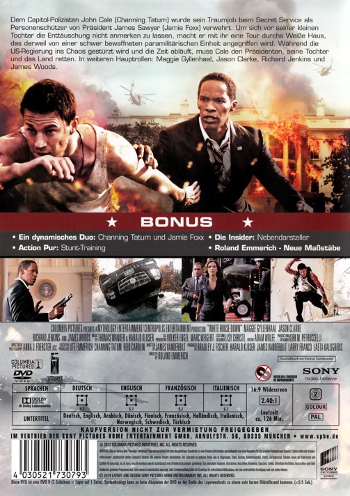 Dem Washingtoner Polizisten John Cale (Channing Tatum) wurde gerade sein Traumjob verwehrt, für den Secret Service als Personenschützer von Präsident James Sawyer (Jamie Foxx) zu arbeiten. Weil er seiner kleinen Tochter die schlechte Nachricht schonend beibringen will, nimmt er sie mit zu einer Besichtigungstour durch das Weisse Haus. Doch plötzlich wird der gesamte Gebäudekomplex von einer schwer bewaffneten paramilitärischen Gruppe gestürmt und besetzt. Während die Regierung ins Chaos stürzt und allen die Zeit davonläuft, liegt es an Cale, den Präsidenten, seine Tochter und das Land zu retten.