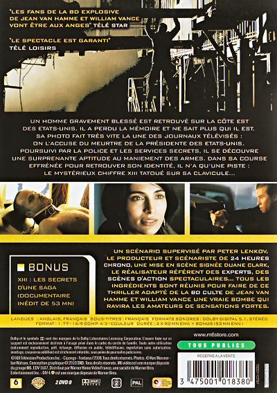 Un homme est retrouvé dans une forêt de la côte Est des Etats-Unis, gravement blessé et amnésique. Très vite, un commando surarmé retrouve sa trace et tente de le tuer. C'est le début d'une course effrénée pour retrouver son identité et comprendre le rôle qu'on lui a fait jouer dans un complot qui touche le sommet de l'administration américaine. Il n'a qu'une piste: le mystérieux chiffre XIII tatoué sur sa clavicule...