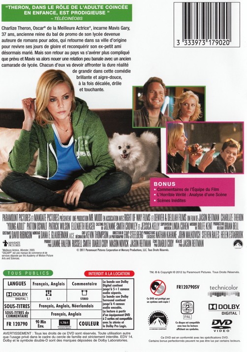 Charlize Theron, Oscar de la Meilleure Actrice, incarne Mavis Gary, 37 ans, ancienne reine du bal de promo de son lycée devenue auteure de romans pour ados, qui retourne dans sa ville d’origine pour revivre ses jours de gloire et reconquérir son ex-petit ami désormais marié. Mais son retour au pays va s’avérer plus compliqué que prévu et Mavis va alors nouer une relation peu banale avec un ancien camarade de lycée. Chacun d’eux va devoir affronter la dure réalité de grandir dans cette comédie brillante et aigre-douce, à la fois décalée, drôle et touchante.