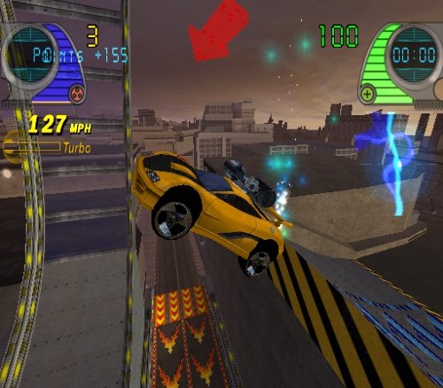 Coole Autos, wilde Stunts, explosive Crashs und halsbrecherische Geschwindigkeit in einer abgedreht-futuristischen 3D-Welt
