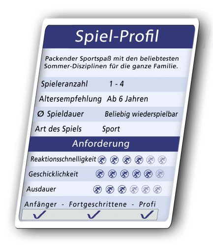 Mit Summer Athletics geht es wieder sportlich in heimischen Wohnzimmern zu: Spannende Wettkämpfe in über 25 der beliebtesten Sommersportdisziplinen wie z. B. Sprinten, Hürdenlauf, Radfahren, Bogenschiessen, Speerwerfen, Hammerwerfen oder Schwimmen sorgen für lang anhaltenden Spielspass. Summer Athletics wird ein actiongeladener Mehrspieler-Spass für die ganze Familie. Die intuitive Steuerung wurde dabei optimal an die Möglichkeiten der jeweiligen Plattform angepasst. Vier unterschiedliche Schwierigkeitsgrade sorgen dafür, dass sowohl Viel- als auch Gelegenheitsspieler ihren Spass haben. Ein Charaktereditor, Karrieremodus, eine überzeugende 3D-Grafik, realistische Animationen der Sportler sowie eine imposante Stadionatmosphäre zeichnen das Spiel aus und tragen zu einem ganz besonderen Flair von Summer Athletics bei.