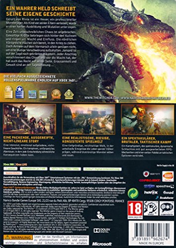 Das preisgekrönte PC RPG 100% uncut für Xbox 360! Der Spieler schlüpft in die Rolle von Geralt, einem professionellen Monsterjäger, der in die politischen Wirren des Königreichs von Temerien verwickelt wurde, als er bei der Niederschlagung des vom Orden der Flammenrose inszenierten Aufstandes half und den König vor einem Attentäter beschützte, der fatal an die Hexer erinnerte. Auch im zweiten Teil des Epos spielt Geralt bei den politischen Ereignissen eine Schlüsselrolle.