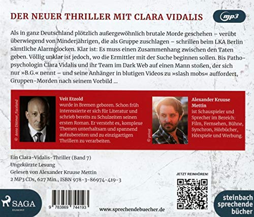Als in ganz Deutschland plötzlich außergewöhnlich brutale Morde geschehen – verübt überwiegend von Minderjährigen, die als Gruppe zuschlagen – schrillen beim LKA Berlin sämtliche Alarmglocken. Klar ist: Es muss einen Zusammenhang zwischen den Taten geben. Völlig unklar ist jedoch, wo die Ermittler mit der Suche beginnen sollen. Bis Pathopsychologin Clara Vidalis und ihr Team im Dark Web auf einen Mann stoßen, der sich nur »B.G.« nennt – und seine Anhänger in blutigen Videos zu »slash mobs« auffordert, Gruppen-Morden nach seinem Vorbild …
