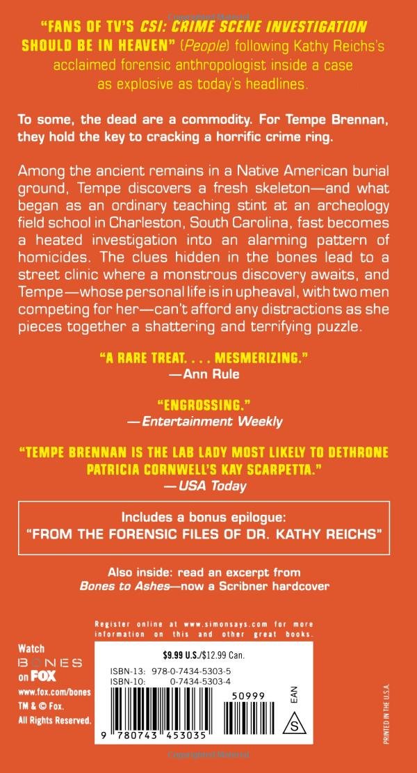 Among the ancient remains in a Native American burial ground, Tempe discovers a fresh skeleton -- and what began as an ordinary teaching stint at an archeology field school in Charleston, South Carolina, fast becomes a heated investigation into an alarming pattern of homicides. The clues hidden in the bones lead to a street clinic where a monstrous discovery awaits, and Tempe -- whose personal life is in upheaval, with two men competing for her -- can't afford any distractions as she pieces together a shattering and terrifying puzzle.