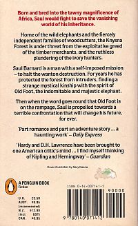 Born and bred into the tawny magnificence of Africa, Saul would fight to save the vanishing world of his inheritance. Home of the wild elephants and the fiercely independent families of woodcutters, the Knysna Forest is under threat from the exploitative greed of the timber merchants, and the ruthless plundering of the ivory hunters. Saul Barnard is a man with a self imposed mission u to halt the wanton destruction. For years he has protected the forest from intruders, finding a strange mystical kinship with the spirit of Old Foot, the indomitable and majestic elephant. Then when the word goes round that Old Foot is on the rampage, Saul is propelled towards a terrible confrontation that will change his future, for ever.