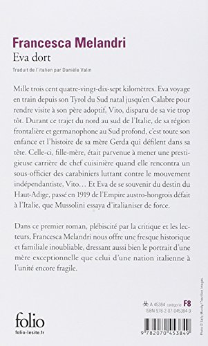 Mille trois cent quatre-vingt-dix-sept kilomètres. Eva voyage en train depuis son Tyrol du Sud natal jusqu'en Calabre pour rendre visite à Vito, disparu de sa vie trop tôt. Durant ce trajet du nord au sud de l'Italie, de sa région frontalière et germanophone au Sud profond, c'est toute son enfance et l'histoire de sa mère Gerda qui défilent dans sa tête. Celle-ci, fille-mère, était parvenue à mener une prestigieuse carrière de chef cuisinière quand elle rencontra un sous-officier des carabiniers luttant contre le mouvement indépendantiste, Vito...Et Eva de se souvenir du destin du Haut-Adige, passé en 1919 de l'Empire austro-hongrois défait à l'Italie, que Mussolini essaya d'italianiser de force. Dans ce premier roman, plébiscité par la critique et les lecteurs, Francesca Melandri nous offre une fresque historique et familiale inoubliable, dressant aussi bien le portrait d'une mère exceptionnelle que celui d'une nation italienne à l'unité encore fragile.