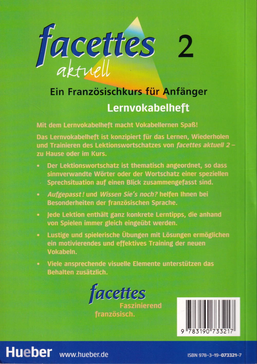 Das Lernvokabelheft ist konzipiert für das Lernen, Wiederholen und Trainieren des Lektionswortschatzes von facettes aktuell 2 zu Hause oder im Kurs.