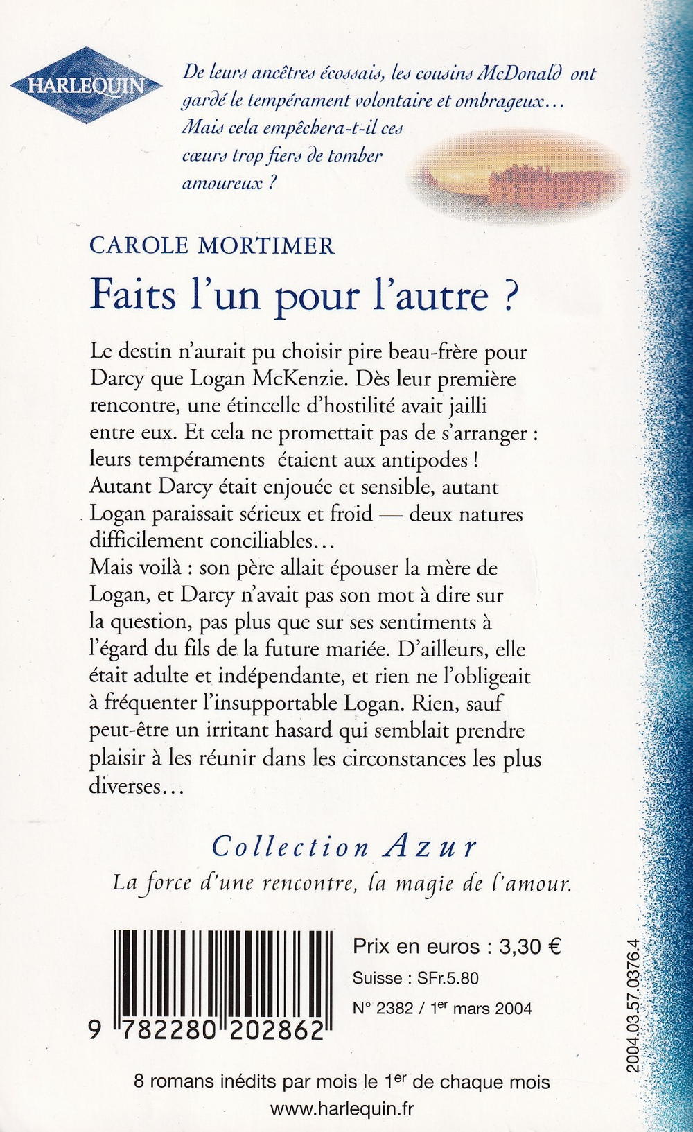 Mais voilà: son père allait épouser la mère de Logan, et Darcy n'avait pas son mot à dire sur la question, pas plus que sur ses sentiments à l'égard du fils de la future mariée. D'ailleurs, elle était adulte et indépendante, et rien ne l'obligeait à fréquenter l'insupportable Logan. Rien, sauf peut-être un irritant hasard qui semblait prendre plaisir à les réunir dans les circonstances les plus diverses...