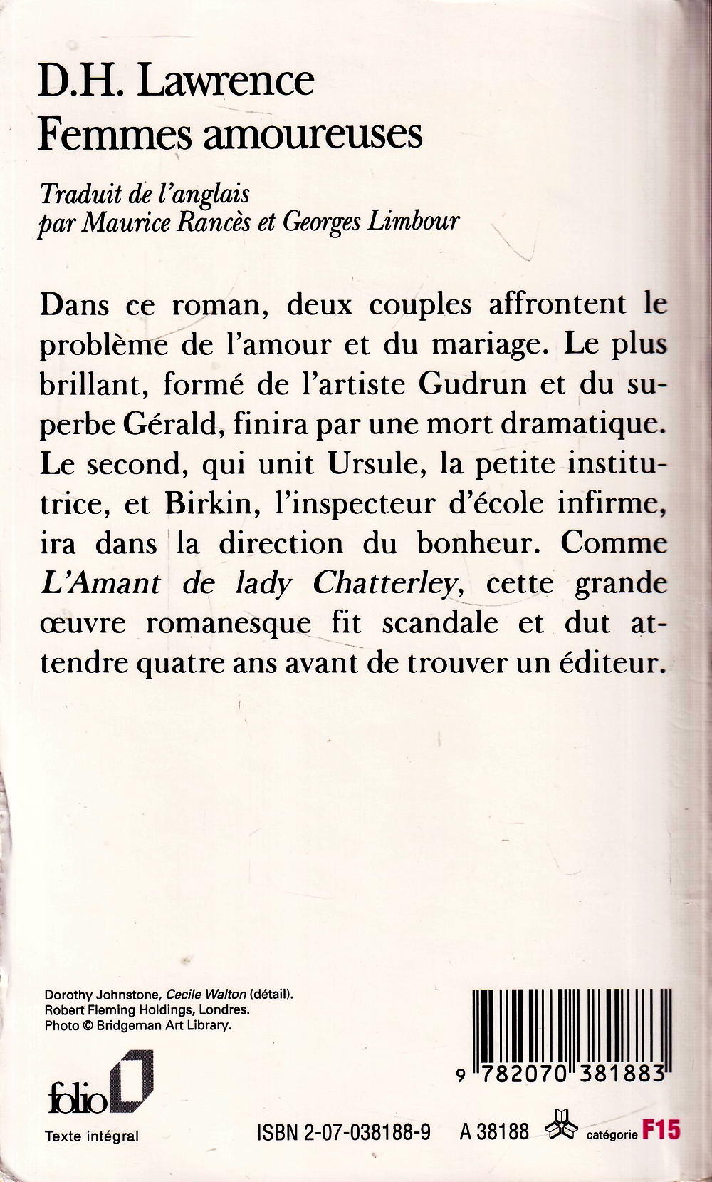 Dans ce roman, deux couples affrontent le problème de l'amour et du mariage. Le plus brillant, formé de l'artiste Gudrun et du superbe Gérald, finira par une mort dramatique. Le second, qui unit Ursule, la petite institutrice, et Birkin, l'inspecteur d'école infirme, ira dans la direction du bonheur. Comme L'Amant de Lady Chatterley, cette grande œuvre romanesque fit scandale et dut attendre quatre ans avant de trouver un éditeur. Quatrième de couverture Dans ce roman, deux couples affrontent le problème de l'amour et du mariage. Le plus brillant, formé de l'artiste Gudrun et du superbe Gérald, finira par une mort dramatique. Le second, qui unit Ursule, la petite institutrice, et Birkin, l'inspecteur d'école infirme, ira dans la direction du bonheur. Comme L'Amant de lady Chatterley, cette grande oeuvre romanesque fit scandale et dut attendre quatre ans avant de trouver un éditeur.
