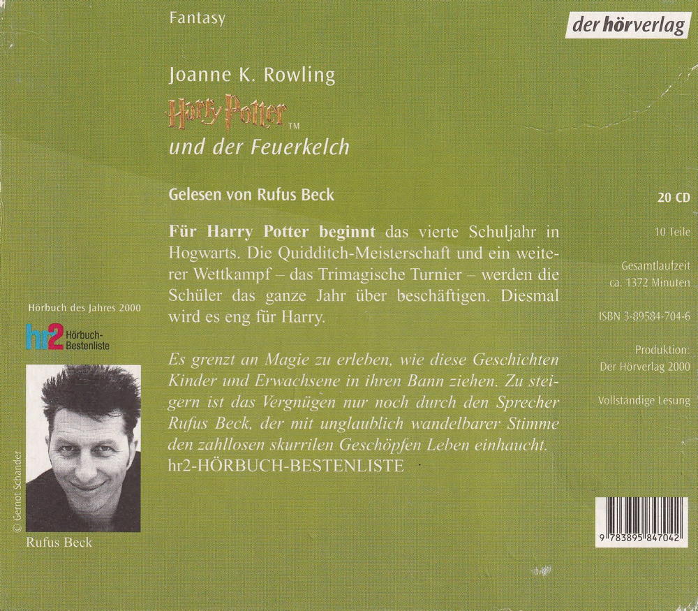 Gelesen von Rufus Beck Für Harry Potter beginnt das vierte Schuljahr in Hogwarts. Die Quidditch-Meisterschaft und ein weiterer Wettkampf – das Trimagische Turnier - werden die Schüler das ganze Jahr über beschäftigen. Diesmal wird es eng für Harry.