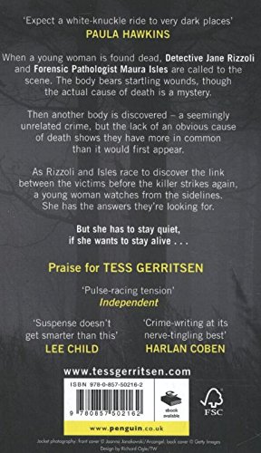 When a young woman is found dead, Detective Jane Rizzoli and Forensic Pathologist Maura Isles are called to the scene of the murder. Though the body bears startling wounds, the actual cause of death is not immediately clear. A few days later, another body is discovered – a seemingly unrelated crime, but the lack of an obvious cause of death shows they have more in common than it would first appear. As Rizzoli and Isles race to discover the link between the victims before the killer can strike again, a mysterious person watches from the sidelines. She has the answers they’re looking for. But she knows she has to stay quiet, if she wants to stay alive...'A fast-paced, dark, edgy mystery/thriller filled with unremitting suspense.