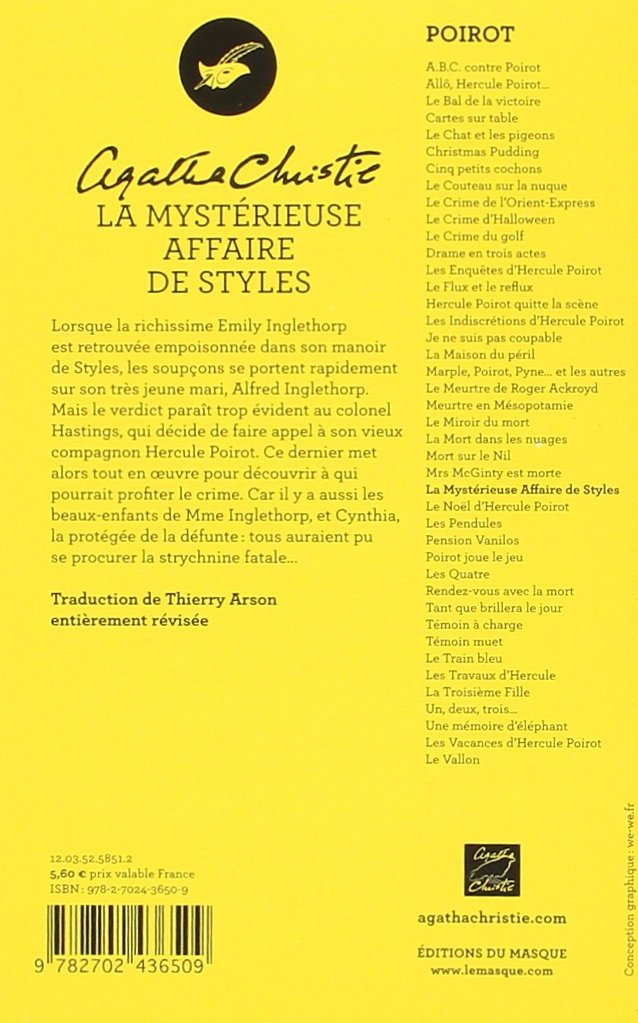 Lorsque la richissime Emily Inglethorp est retrouvée empoisonnée dans son manoir de Styles, les soupçons se portent rapidement sur son très jeune mari, Alfred Inglethorp. Mais le verdict paraît trop évident au colonel Hastings, qui décide de faire appel à son vieux compagnon Hercule Poirot. Ce dernier met alors tout en oeuvre pour découvrir à qui pourrait profiter le crime. Car il y a aussi les beaux-enfants de Mme Inglethorp, et Cynthia, la protégée de la défunte : tous auraient pu se procurer la strychnine fatale...