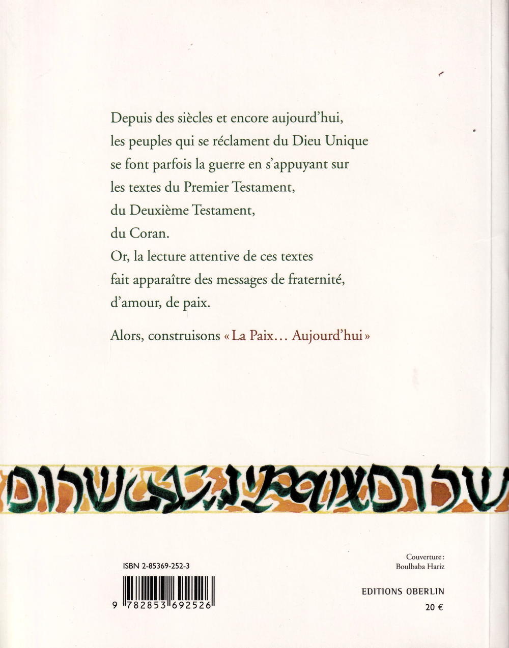 Depuis des siècles et encore aujourd'hui, les peuples qui se réclament du Dieu Unique se font parfois la guerre en s'appuyant sur les textes du Premier Testament, du Deuxième Testament, du Coran.