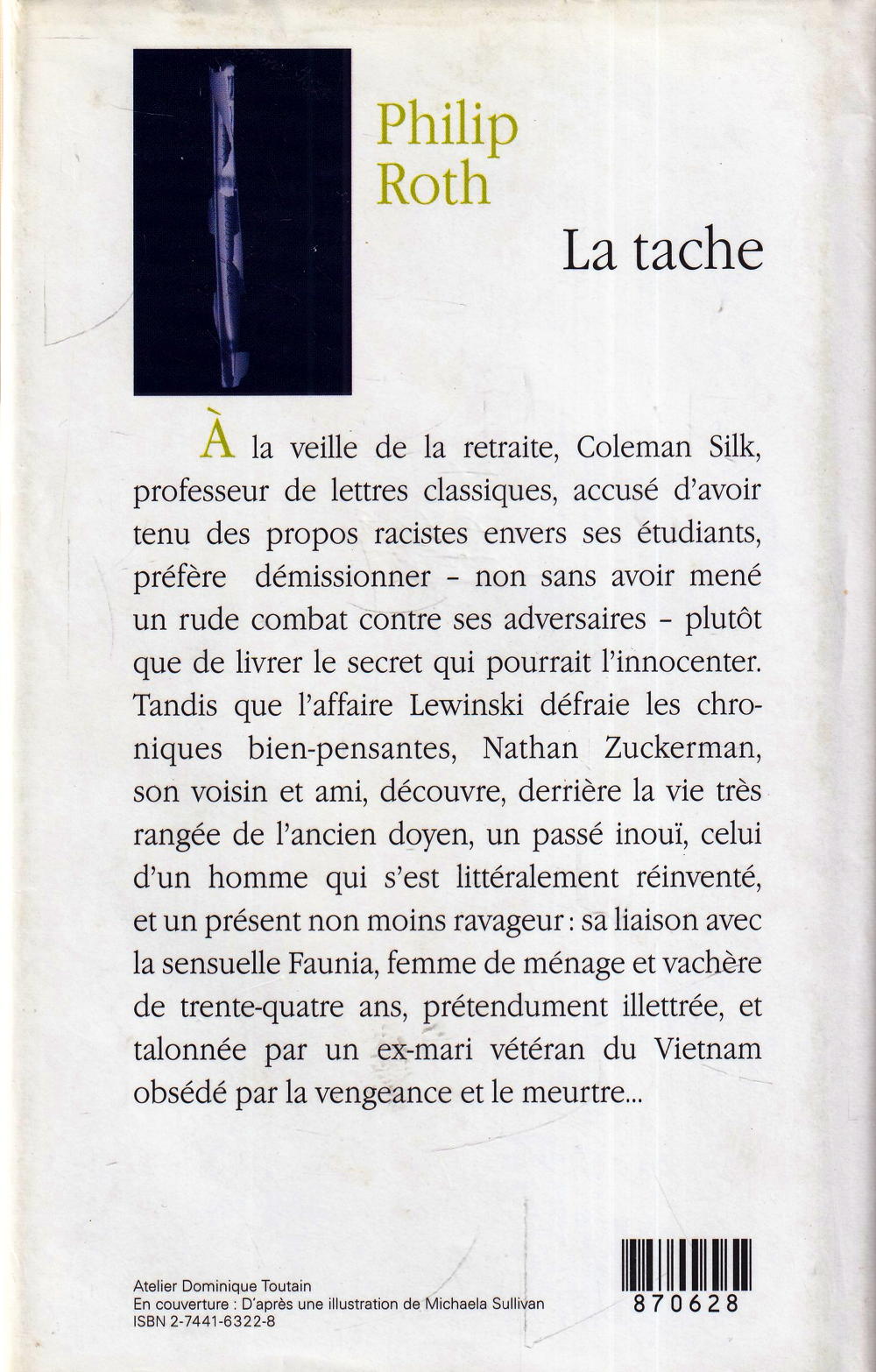 Tandis que l'affaire Lewinski défraie les chroniques bien-pensantes, Nathan Zuckerman, son voisin et ami, découvre, derrière la vie très rangée de l'ancien doyen, un passé inouï, celui d'un homme qui s'est littéralement réinventé, et un présent non moins ravageur: sa liaison avec la sensuelle Faunia, femme de ménage et vachère de trente-quatre ans, prétendument illettrée, et talonnée par un ex-mari vétéran du Vietnam obsédé par la vengeance et le meurtre...