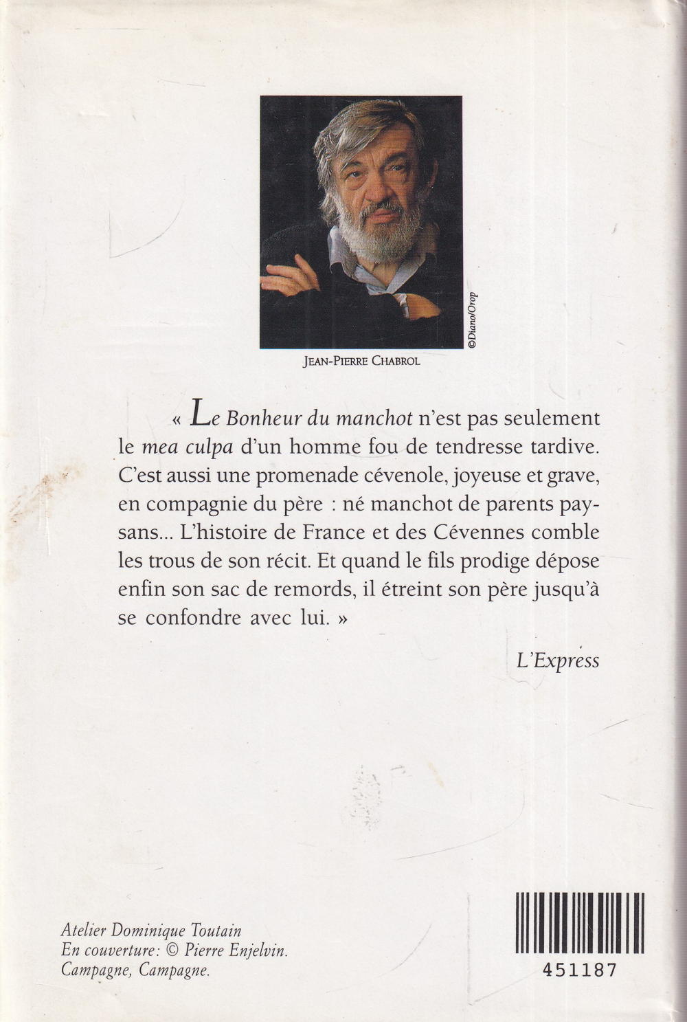 C'est aussi une promenade cévenole, joyeuse et grave, en compagnie du père: né manchot de parents paypas seulement sans... L'histoire de France et des Cévennes comble les trous de son récit. Et quand le fils prodige dépose enfin son sac de remords, il étreint son père jusqu'à se confondre avec lui. »