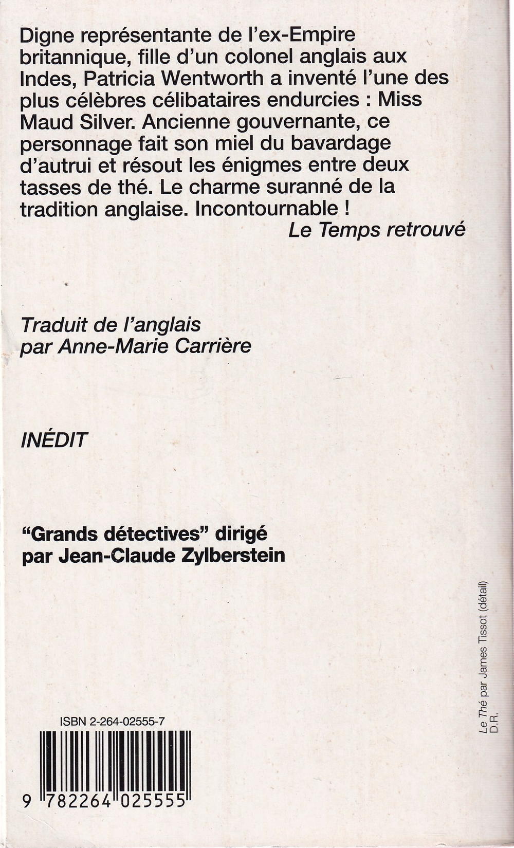 Digne représentante de l'ex-Empire britannique, fille d'un colonel anglais aux Indes, Patricia Wentworth a inventé l'une des plus célèbres célibataires endurcies : Miss Maud Silver. Ancienne gouvernante, ce personnage fait son miel du bavardage d'autrui et résout les énigmes entre deux tasses de thé. Le charme suranné de la tradition anglaise. Incontournable !