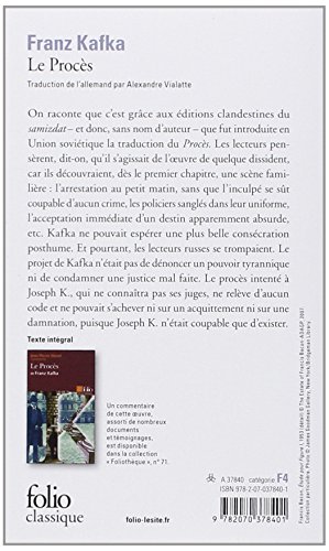 On raconte que c'est grâce aux éditions clandestines du samizdat - et donc, sans nom d'auteur - que fut introduite en Union soviétique la traduction du Procès. Les lecteurs pensèrent, dit-on, qu'il s'agissait de l'œuvre de quelque dissident, car ils découvraient, dès le premier chapitre, une scène familière : l'arrestation au petit matin, sans que l'inculpé se sût coupable d'aucun crime, les policiers sanglés dans leur uniforme, l'acceptation immédiate d'un destin apparemment absurde, etc. Kafka ne pouvait espérer une plus belle consécration posthume. Et pourtant, les lecteurs russes se trompaient. Le projet de Kafka n'était pas de dénoncer un pouvoir tyrannique ni de condamner une justice mal faite. Le procès intenté à Joseph K., qui ne connaîtra pas ses juges, ne relève d'aucun code et ne pouvait s'achever ni sur un acquittement ni sur une damnation, puisque Joseph K. n'était coupable que d'exister.