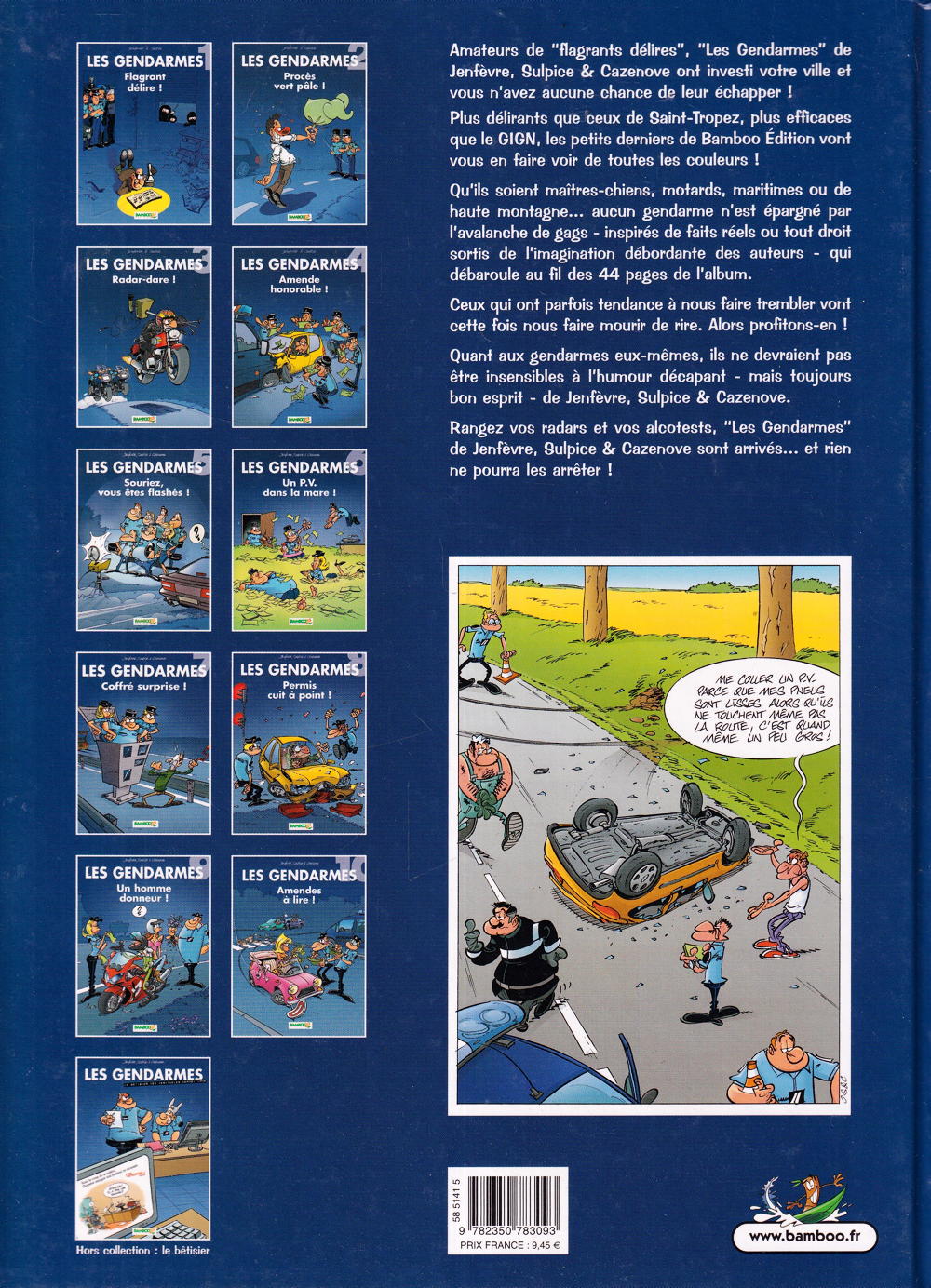 Qu'ils soient maîtres-chiens, motards, maritimes ou de haute montagne...aucun gendarme n'est épargné par l'avalanche de gags - inspirés de faits réels ou tout droit sortis de l'imagination débordante des auteurs - qui débaroule au fil des 44 pages de l'album.
