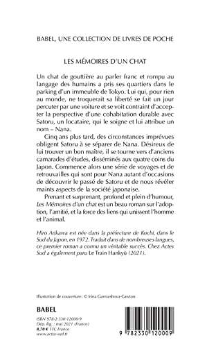 Un chat de gouttière au parler franc et rompu au langage des humains a pris ses quartiers dans le parking d'un immeuble de Tokyo. Lui qui, pour rien au monde, ne troquerait sa liberté se fait un jour percuter par une voiture et se voit contraint d'accepter la perspective d'une cohabitation durable avec Satoru, un locataire, qui le soigne et lui attribue un nom - Nana. Cinq ans plus tard, des circonstances imprévues obligent Satoru à se séparer de Nana. Désireux de lui trouver un bon maître, il se tourne vers d'anciens camarades d'études, disséminés aux quatre coins du Japon. Commence alors une série de voyages et de retrouvailles qui sont pour Nana autant d'occasions de découvrir le passé de Satoru et de nous révéler maints aspects de la société japonaise. Prenant et surprenant, profond et plein d'humour, Les Mémoires d'un chat est un beau roman sur l'adoption, l'amitié, et la force des liens qui unissent l'homme et l'animal.
