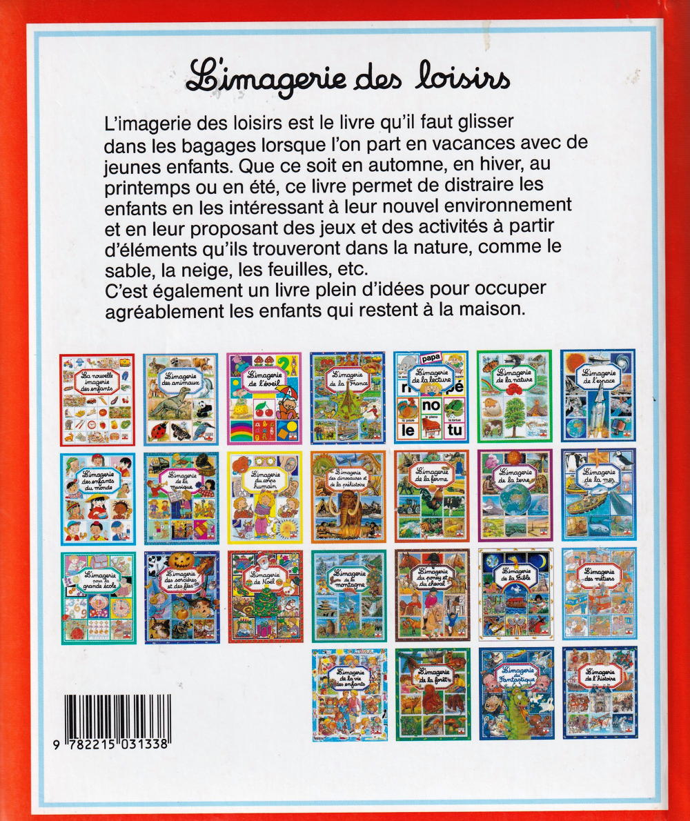 L'imagerie des loisirs est le livre qu'il faut glisser dans les bagages lorsque l'on part en vacances avec de jeunes enfants. Que ce soit en automne, en hiver, au printemps ou en été, ce livre permet de distraire les enfants en les intéressant à leur nouvel environnement et en leur proposant des jeux et des activités à partir d'éléments qu'ils trouveront dans la nature, comme le sable, la neige, les feuilles, etc.