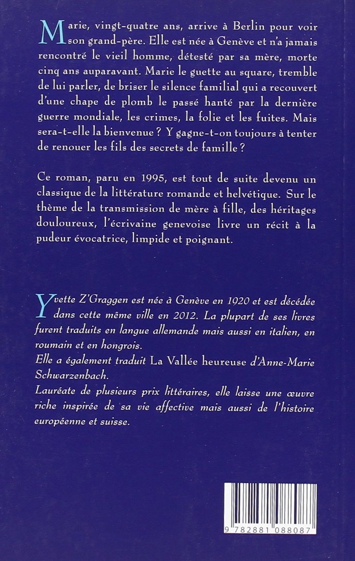 Marie, vingt-quatre ans, arrive à Berlin pour voir grand-père. Elle est née à Genève et n'a jamais rencontré le vieil homme, détesté par sa mère, morte son cinq ans auparavant. Marie le guette au square, tremble de lui parler, de briser le silence familial qui d'une chape de plomb le passé hanté par la dernière guerre mondiale, les crimes, la folie et les fuites. Mais sera-t-elle la bienvenue? Y gagne-t-on toujours à tenter de renouer les fils des secrets de famille?