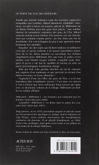 enquêtaient pour Millénium. Pire que tout, la police et les médias vont bientôt traquer Lisbeth, coupable toute désignée et qu'on a vite fait de qualifier de tueuse en série au passé psychologique lourdement chargé.