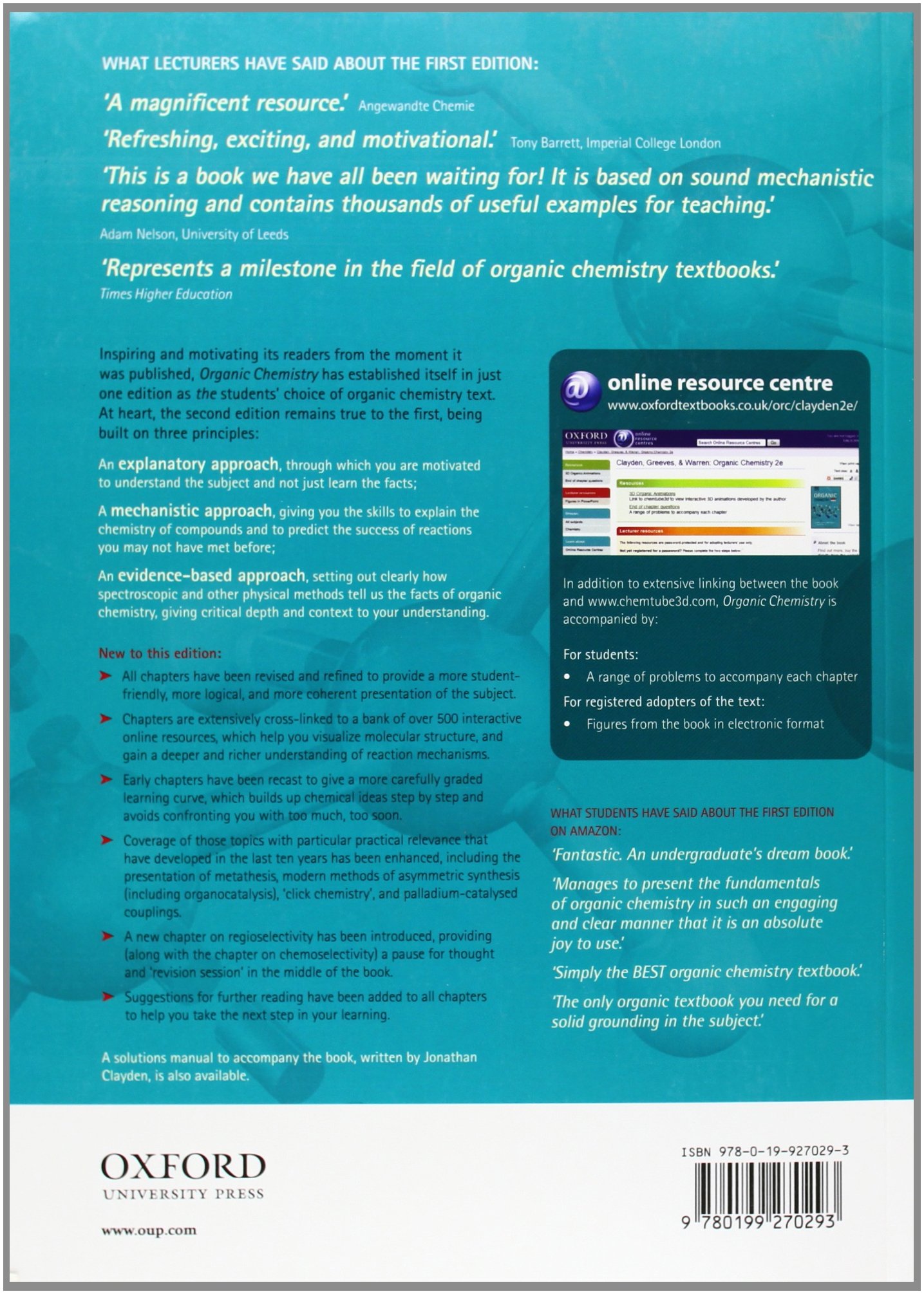 The authors write clearly and directly, sharing with the reader their own fascination with the subject, and leading them carefully from topic to topic. Their honest and open narrative flags pitfalls and misconceptions, guiding the reader towards a complete picture of organic chemistry and its universal themes and principles.