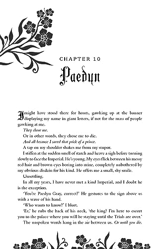 Fourth Wing meets The Hunger Games in this sizzling fantasy romance not to be missed. Only the extraordinary belong in the kingdom of Ilya...The exceptional. The Elites. The Elites have possessed powers for decades, gifted to them by the Plague, while those born Ordinary are just that, banished from the kingdom and shunned from society. No one knows this better than Paedyn Gray, an Ordinary posing as an Elite. When she unsuspectingly saves one of Ilya's princes, Kai Azer, she's thrown into the Purging Trials, a brutal competition to showcase her 'Elite' powers. If the Trials and the opponents don't kill her, the prince she's fighting feelings for will if he discovers what Paedyn really is... completely Ordinary. Be swept away by the first in the smash hit, dagger-to-the-throat romantasy trilogy that's taken the world by storm.