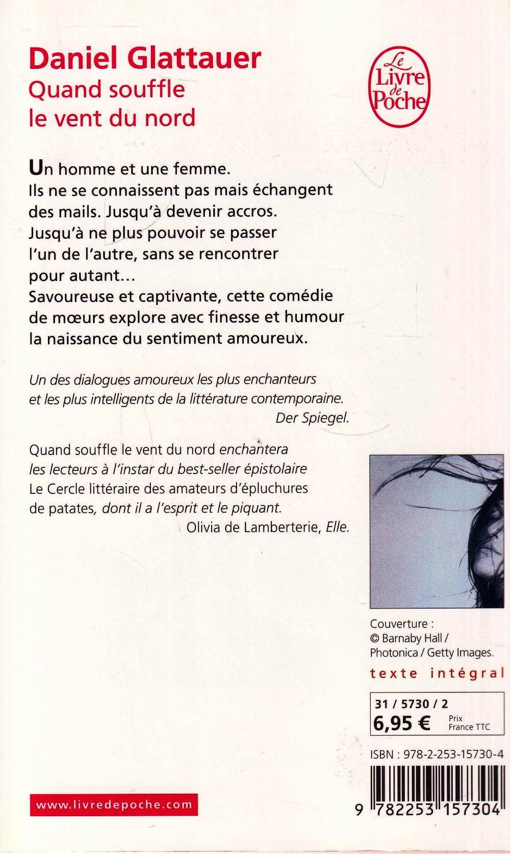 Un homme et une femme. Ils ne se connaissent pas mais échangent des mails. Jusqu’à devenir accros. Jusqu’à ne plus pouvoir se passer l’un de l’autre, sans se rencontrer pour autant… Savoureuse et captivante, cette comédie de mœurs explore avec finesse et humour la naissance du sentiment amoureux. Un des dialogues amoureux les plus enchanteurs et les plus intelligents de la littérature contemporaine. Der Spiegel. Quand souffle le vent du nord enchantera les lecteurs à l’instar du best-seller épistolaire, Le Cercle littéraire des amateurs d’épluchures de patates, dont il a l’esprit et le piquant. Olivia de Lamberterie, Elle.