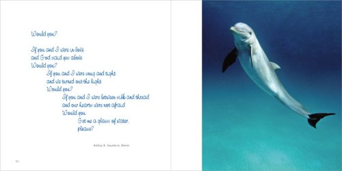 Das Buch ist eine Mischung aus Foto-Kunst- und Gedichtband. Es enthält vor allem Kurzgedichte und Worte, die meist gegenüber einem seitenfüllenden Delfinfoto liegen. Foto und Textaussage gehören zusammen und sollen dazu einladen, sich ins Wesen der Delfine einzustimmen. Es gibt auch Sequenzen von reinen Foto- und reinen Textseiten. In den Texten beschreibt die Autorin, was sie auf ihren Bootsausflügen auf Hawaii und den Bahamas sowie an der Küste mit Delfinen erlebt hat. In einer anderen Textsequenz beschreibt sie, wie die einzelnen Reisen ihr Inneres berührt und verändert haben. Die meisten Bildsequenzen sind allein den Delfinen gewidmet. Sie zeigen ihre Schönheit und Eleganz, ihre Dynamik und Verspieltheit. Einzelne Aufnahmen zeigen auch Delfine zusammen mit Menschen im offenen Meer, Stimmungen auf dem Meer oder gewähren Einblicke in die Unterwasserwelt. Das Fotomaterial stammt von der Autorin und 7 weiteren Fotografinnen und Fotografen, die im Bilderverzeichnis zu finden sind, inklusive Portrait, Adresse und Web-Link.