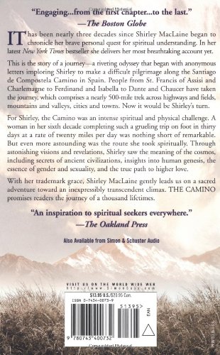 This is the story of a journey. It is the eagerly anticipated and altogether startling culmination of Shirley MacLaine's extraordinary -- and ultimately rewarding -- road through life. The riveting odyssey began with a pair of anonymous handwritten letters imploring Shirley to make a difficult pilgrimage along the Santiago de Compostela Camino in Spain. Throughout history, countless illustrious pilgrims from all over Europe have taken up the trail. It is an ancient -- and allegedly enchanted -- pilgrimage. People from St. Francis of Assisi and Charlemagne to Ferdinand and Isabella to Dante and Chaucer have taken the journey, which comprises a nearly 500-mile trek across highways, mountains and valleys, cities and towns, and fields. Now it would be Shirley's turn.