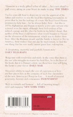Twelve year old Amir is desperate to win the approval of his father Baba, one of the richest and most respected merchants in Kabul. He has failed to do so through academia or brawn, but the one area where they connect is the annual kite fighting tournament. Amir is determined not just to win the competition but to run the last kite and bring it home triumphantly, to prove to his father that he has the makings of a man. His loyal friend Hassan is the best kite runner that Amir has ever seen, and he promises to help him - for Hassan always helps Amir out of trouble. But Hassan is a Shi'a Muslim and this is 1970s Afghanistan. Hassan is taunted and jeered at by Amir's school friends; he is merely a servant living in a shack at the back of Amir's house. So why does Amir feel such envy towards his friend? Then, what happens to Hassan on the afternoon of the tournament is to shatter all their lives, and define their futures.