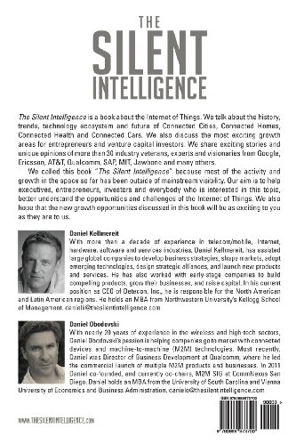 The Silent Intelligence is a book about the Internet of Things. We talk about the history, trends, technology ecosystem and future of Connected Cities, Connected Homes, Connected Health and Connected Cars. We also discuss the most exciting growth areas for entrepreneurs and venture capital investors. We share exciting stories and unique opinions of more than 30 industry veterans, experts and visionaries from Google, Ericsson, AT&T, Qualcomm, SAP, MIT, Jawbone and many others. We called this book The Silent Intelligence because most of the activity and growth in the space so far has been outside of mainstream visibility. Our aim is to help executives, entrepreneurs, investors and everybody who is interested in this topic, better understand the opportunities and challenges of the Internet of Things. We also hope that the new growth opportunities discussed in this book will be as exciting to you as they are to us.