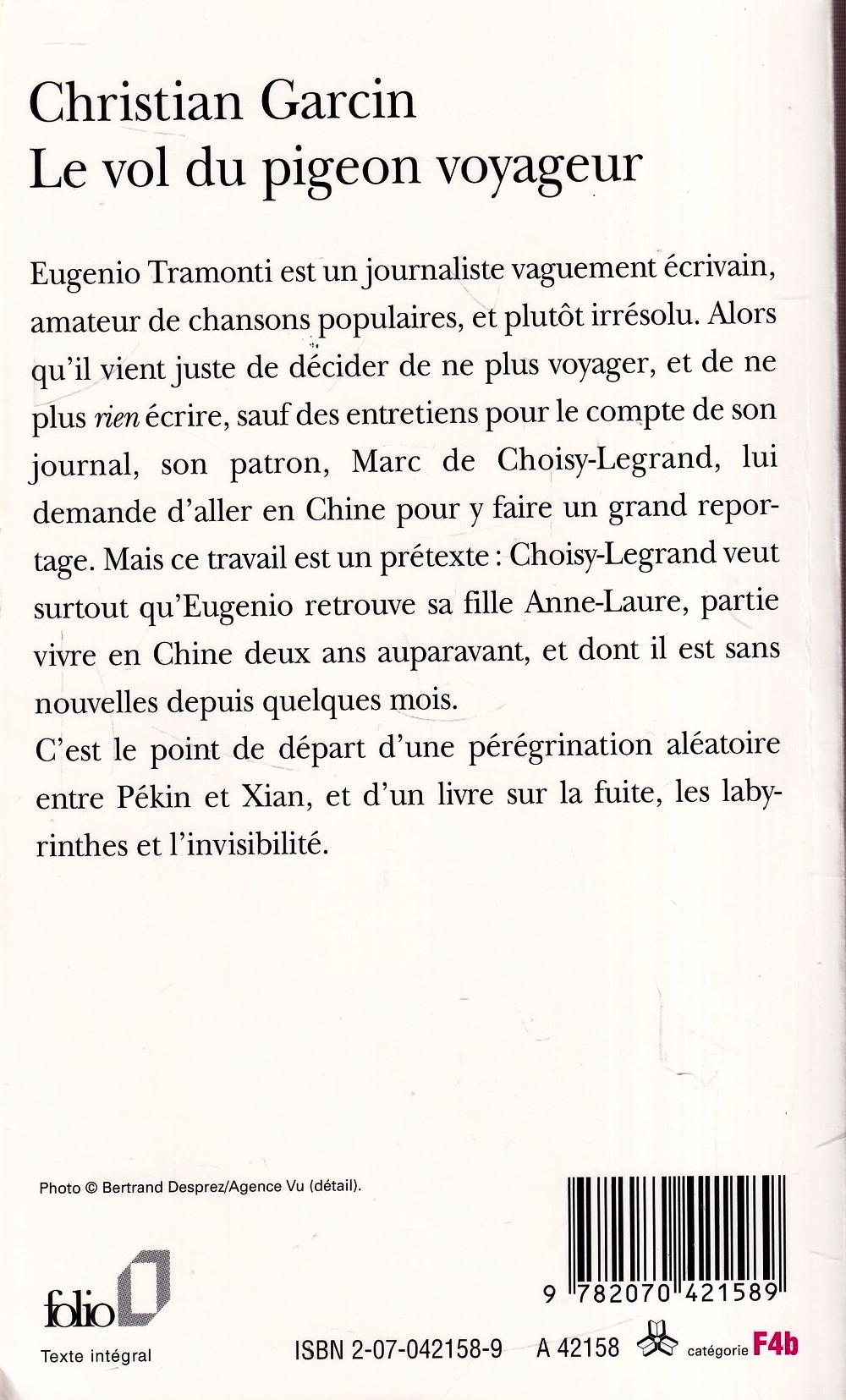 Eugenio Tramonti est un journaliste vaguement écrivain, amateur de chansons populaires, et plutôt irrésolu. Alors qu'il vient juste de décider de ne plus voyager, et de ne plus rien écrire, sauf des entretiens pour le compte de son journal, son patron, Marc de Choisy-Legrand, lui demande d'aller en Chine pour y faire un grand reportage. Mais ce travail est un prétexte : Choisy-Legrand veut surtout qu'Eugenio retrouve sa fille Anne-Laure, partie vivre en Chine deux ans auparavant, et dont il est sans nouvelles depuis quelques mois. C'est le point de départ d'une pérégrination aléatoire entre Pékin et Xian, et d'un livre sur la fuite, les labyrinthes et l'invisibilité.