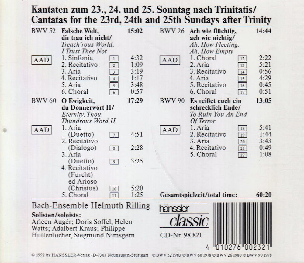 Die Bach Kantate - BWV 26, 52, 60, 90 [CD]