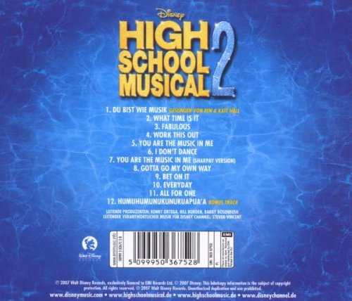 Es ist soweit: Die Original-Crew des Teenagerphänomens um Zac Efron und Vanessa Anne Hudgens ist mit 12 exklusiven Tracks zurück. Der Soundtrack zum 1. Teil des Teenager Musicals erhielt hierzulande Gold. Als Komponisten für High School Musical 2 kamen natürlich wieder nur die Weltbesten in Frage: Robbie Nevil ( Destiny's Child, Melissa Etheridge und Stevie Wonder) und Matthew Gerrard (Kelly Clarkson, Hilary Duff und Jessica Simpson). Zarte Töne erklingen auf dem High School Musical 2 Soundtrack bei Balladen wie You Are the Music in Me oder I Gotta Go My Own Way. Dabei schwelgt jeder in Gedanken an die grosse Liebe. Aber auch schnellere, rockigere Songs wie Bet On It von Troy oder R'n'B lastigere Tracks wie I Don't Dance von Chad und Ryan gibt es auf High School Musical 2. Sie machen den Soundtrack zu einem perfektem Mix Sommerferien!