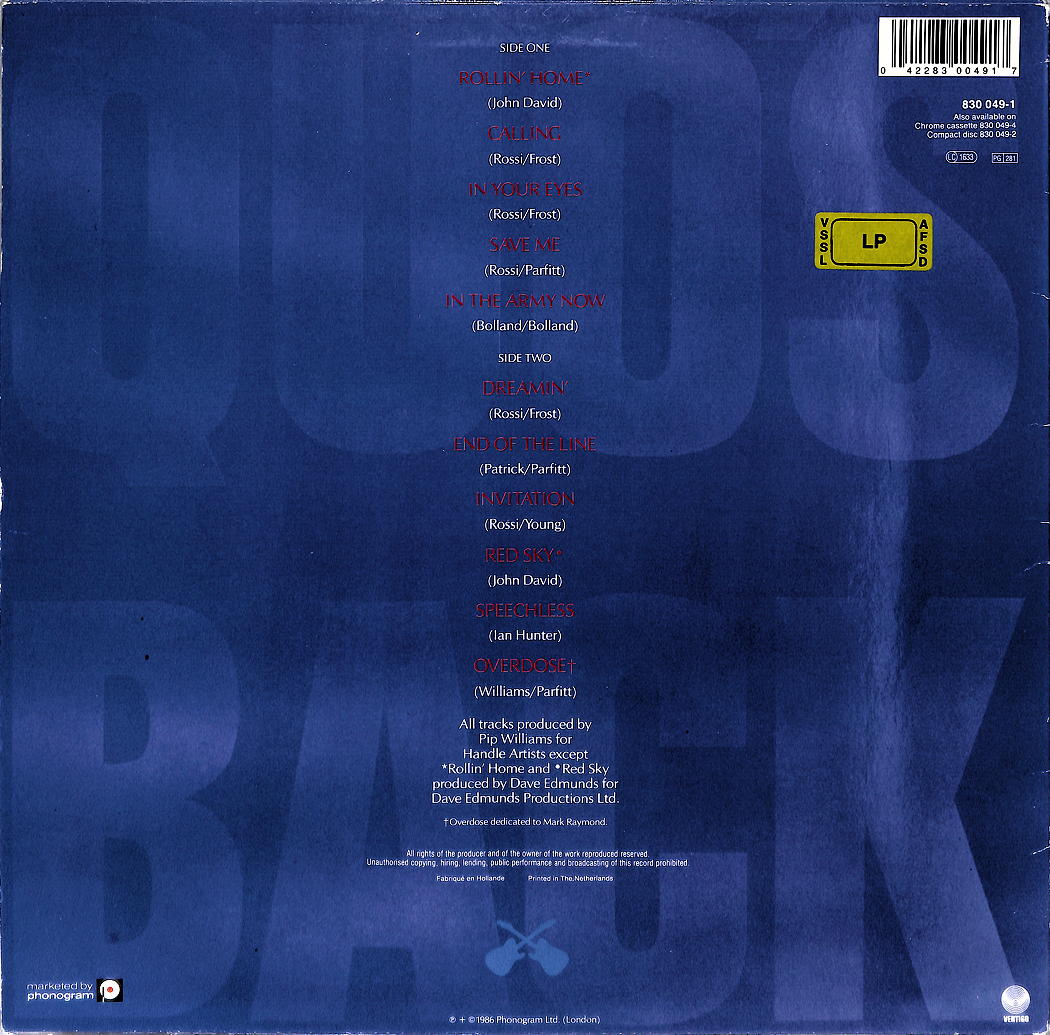 Producer – Dave Edmunds (tracks: A1, B4), Pip Williams (tracks: A2 to B3, B5, B6)